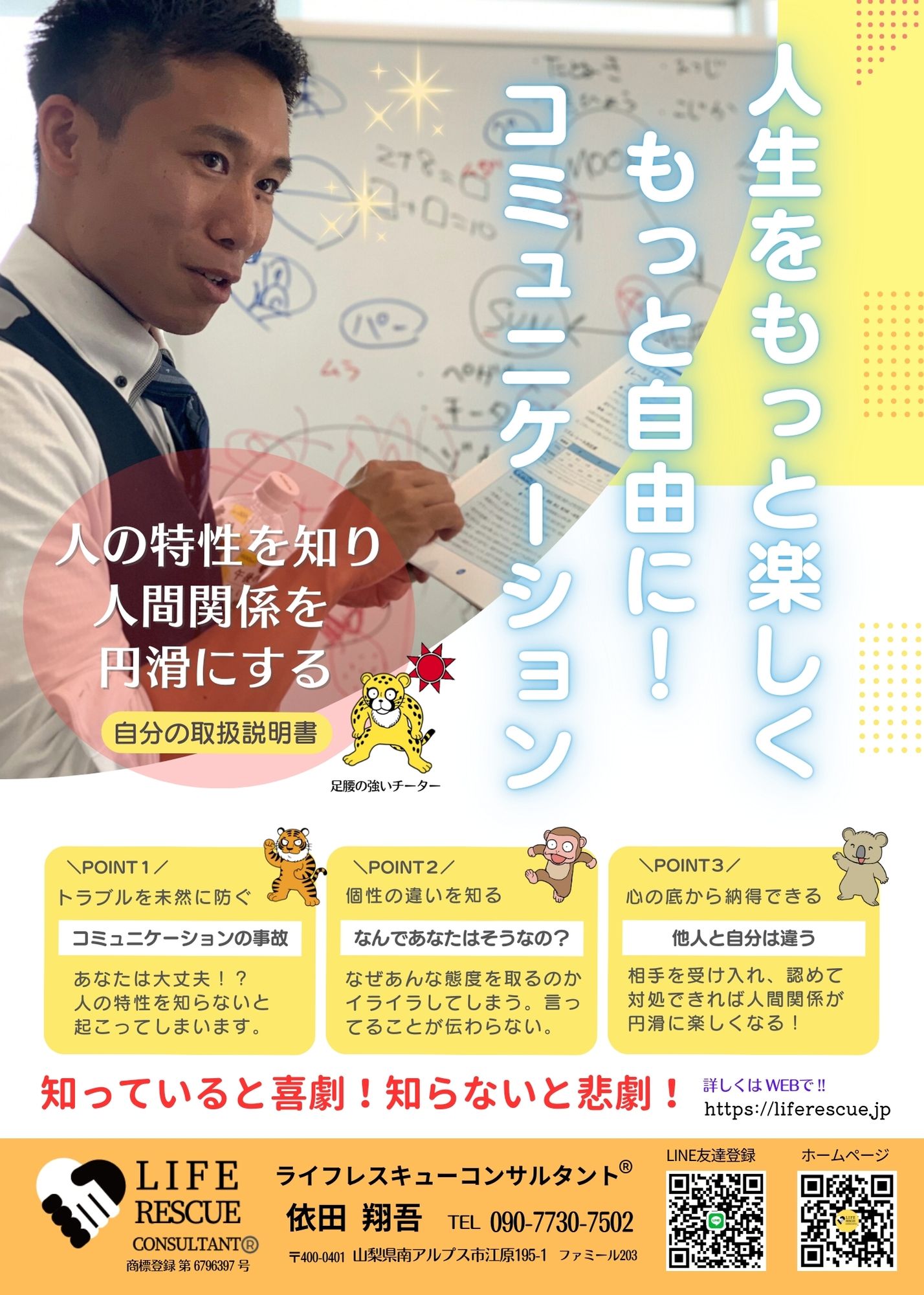 人生の教習所の教官としての役割「ライフレスキューコンサルタント」として商標登録をいたしました。